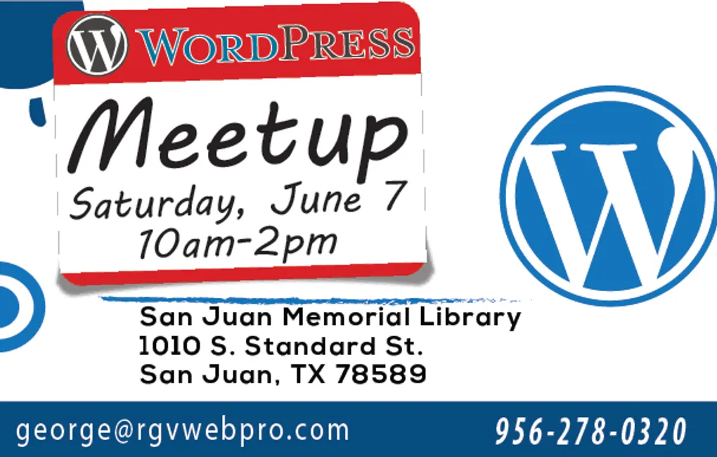 Very pleased to announce that the City of San Juan, Texas invited me to host a WordPress Meetup on June 7, 2014. The event will be held at the San Juan Public Library, located at 1010 S. Standard, San Juan, TX 78589.